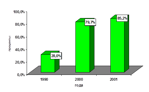 В 2000 году в половине случаев применялся левомецитин (55,1%), причем 28,2% больных получили антибиотикотерапию по следующей схеме: