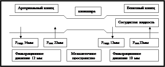 Схема движения жидкости между периферическими сосудами и внеклеточной жидкостью