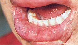 В запущенных случаях бывает нелегко выявить первопричинное нарушение архитектоники (рис. 2, 3, 4, 5, 6). Начавшись с локализованных проявлений в области этих на-рушенний воспаление распространяется на остальные участки слизистой, кожи и красной каймы. У этих пациентов на помощь приходит
