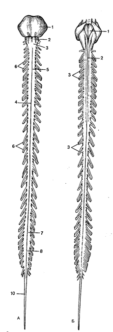 столб, шейный и грудной изгибы. Верхние отделы спинного мозга переходят в голов