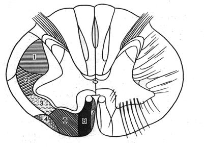 тов, занимающих определенное положение в латеральных и вентральных канатиках белого