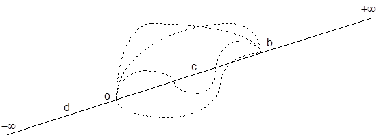 Путем продолжения отрезка в направлении от точки d к с получаем полупрямую, а продолжая отрезок и в противоположную сторону от точки d, будем иметь бесконечную прямую(рис. 1).
