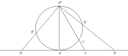 Соединим полюс с точками d, c и b, каждая из приведенных проектирующих прямых пересекает окружность в точках d ¢, c ¢ и b ¢. Очевидно, между точками d и d ¢, c и c ¢, b и b ¢, имеется взаимооднозначное соответствие. Полюс o p