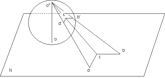 Возьмем плоскость N, в точке o которой поместим сферу диаметром o-o p
