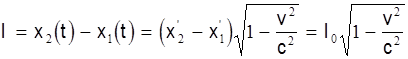 Из преобразования Лоренца следует, что линейный размер тела, движущегося относительно инерциальной системы отсчета, уменьшается в направлении движения. Это изменение продольного размера при движении называется Лоренцовым сокращением