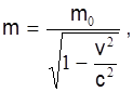 В релятивистской динамике, в отличие от классической, масса материальной точки не постоянна, а зависит от скорости этой точки. Зависимость массы от скорости выражается формулой