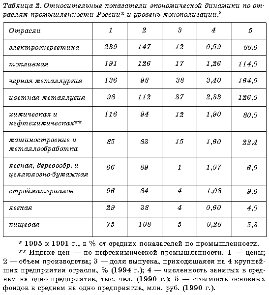 Но здесь возникает еще одна проблема, заключающаяся в том, что десятилетиями складывающаяся отраслевая монополия не может быть быстро заменена свободным и самоорганизующимся рынком, ведь утверждение конкурентных отношений — не единовременная моментальная акция, а процесс длительный, сложный, а для немалого же числа предприятий — гибельный. Выжить смогут лишь те предприятия, которые обеспечат более высокое качество товара, относительно более низкие цены и быструю сменяемость ассортимента.
