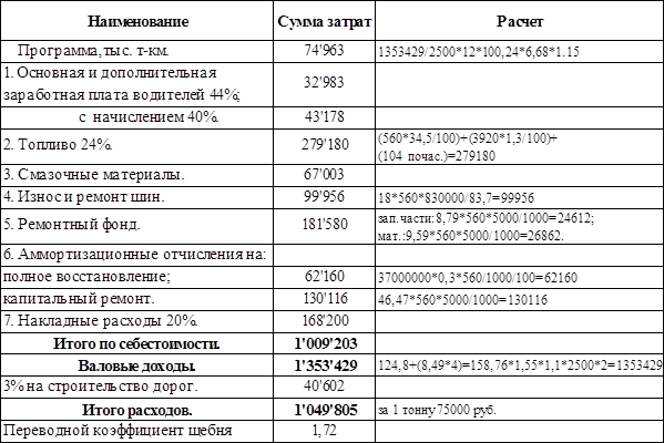 Расчет себестоимости перевозок осуществляется на основании действующего положения о составе затрат.