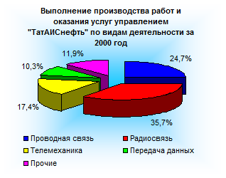 Управление «ТатАИСнефть» в 2000 году выполнило следующие виды работ и оказало следующий спектр услуг связи:
