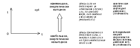 Самоорганизация лежит в основе любого развития. Определимся, что считать развитием. По нашему мнению, это есть процесс самопроизвольного перехода от энергетически невыгодного к энергетически выгодному состоянию. Последнее следует рассматривать как оптимальное состояние – для данных условий и данной среды. Т.е. развитие удовлетворяет т.н. стреле оптимальности – оно всегда направлено в сторону экономии энергетических затрат, точнее, рационального расходования энергии, и в силу этого одностороннее (асимметричное). Иначе: развитие удовлетворяет принципу наименьшего действия (бережливости природы). Примем оптимальное – наилучшее, с качественной точки зрения, – за норму. Тогда стремление к оптимальному мы будем рассматривать как стремление к восстановлению или, по крайней мере, достижению нормы. Отсюда: принцип наименьшего действия имеет общую природу с принципом отрицательной обратной связи, который можем сформулировать так: при отклонении от нормы (оптимального режима функционирования) возникает встречное, противоположно направленное действие – противодействие, которое стремится вернуть систему в нормальное, или оптимальное, состояние. Сам процесс возврата в оптимальный (энергетически выгодный) режим нужно считать самоорганизацией.