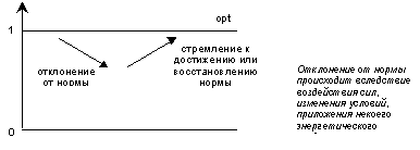 По Альтшуллеру [5], всякая система стремится к увеличению степени идеальности (т.н. закон увеличения степени идеальности). Иными словами, всякая система будет продвигаться сама собой, т.е. самопроизвольно, от 0 до 1 на приводимом выше графике, поскольку это удовлетворяет стреле оптимальности и обусловлено явлением самоорганизации. Развитие вспять – со снижением в сторону 0 осуществляется только при воздействии силы извне, а также при выработке естественного ресурса, отведенного природой, например, если система – организм.
