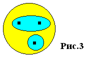 Поставим в соответствие множеству размерностей пространства множество точек. Тогда 3-мерное пространство соответствует множеству из трех точек, 2-мерное - множеству из двух точек, 1- мерное - множеству из одной точки, 0- мерное - пустому множеству точек. Рассмотрим пересечения подмножеств точек в множестве из трех точек (рис.2).