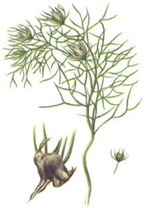 Листья очередные, короткочерешко-вые, сидячие, глубоко трех-, пятираздель-ные с цельными или трех-, пятираздельными долями длиной 1—3,5 см. Цветки одиночные, многочисленные, желтые, на цветоножках, по 1—3 на верхушке стеблей и ветвей, пятичленные, околоцветник двойной. Чашечка остающаяся при плодах, почти до основания пятираздельная, доли ее линейные, заостренные, цельные или слегка надрезанные. Венчик из 5 эллиптических лепестков, длиной 1,5—2 см. Тычинок 15. Плод — коробочка, приплюснутая, трехгнездная, многосеменная, трехстворчатая, диаметром 6—10 мм. Семена коричневые или буровато-серые, клиновидные, трехгранные, длиной 3—4 мм, с бугорчатой поверхностью. Цветет в мае — июле, плоды созревают в июле — августе.