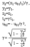 Из постулатов вытекают преобразования координат и времени для двух систем отсчета (OX1Y1Z1) и (OX2Y2Z2), движущихся относительно абсолютной системы с различными скоростями v1 и v2 , называемыми в дальнейшем абсолютными (см. статью на интернет-сайте: http://www.c.dol.ru, 2001):