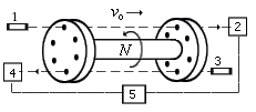 направлениях между двумя синхронно вращающимися дисками. Диски с отверстиями по периферии, жестко закрепленные на общей оси, выполняли роль синхронизированных затворов, формирующих импульсы света, проходящие к фотодетекторам 2, 4. В детекторе тока 5 регистрируется разность токов, возникающая в следствии анизотропии скорости света. Это позволило вычислить значение абсолютной скорости Земли (v0), которое составило 362 40 км/с.