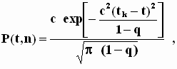 Отсюда видно, что при фиксированном t, по мере роста отчуждаемого продукта q, функция P(t, n), то есть величина социальных противоречий, уменьшается, так как экспонента, стоящая в знаменателе этой дроби, уменьшается гораздо быстрее, чем уменьшается знаменатель