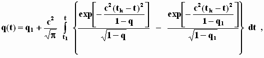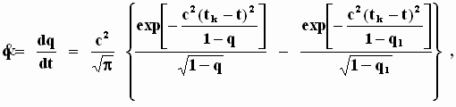 Из этого уравнения, путем численных методов, следует сначала найти неизвестную величину , выразив её через величины , q1 , и c, которые можно считать известными; затем можно численно проинтегрировать дифференциальное уравнение (19) и найти приближенную зависимость q(t), а затем, по формуле (11), - найти неизвестную функцию n(t). Таков трудный и долгий путь решения поставленной задачи. Это работа не для одного человека.