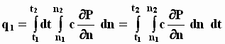 Очевидно, что для любого интервала времени (t1, t2), внутри которого частные производные и непрерывны, выполняется условие неразрывности: q1 = q2, поэтому, сравнивая подынтегральные выражения в интегралах (14) и (15), получаем очень важную дифференциальную зависимость