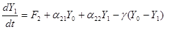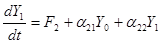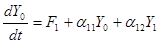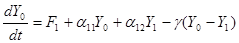 Такое сходство позволяет предложить и вполне адекватную динамическую характеристику конфликтной ситуации — накопленную «напряженность» Y (этот термин удобен применительно именно к конфликтам, хотя фактически речь идет о потенциале). При этом естественно ввести данную характеристику для каждой из участвующих в конфликте сторон, например, Y0 и Y1 , если ограничиться случаем двухстороннего конфликта. Далее, поскольку среди многочисленных факторов наиболее сильными являются лишь те, которые включаются в цепь обратных связей, можно анализировать значительно упрощенный, но сохраняющий это принципиальное положение вариант задачи, когда на изменение величин Y0 и Y1 во времени t аддитивно и линейно влияют обе накопленные напряженности: