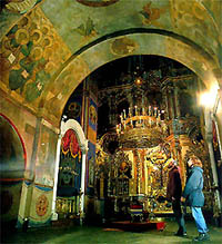 Аллегорические фигуры царей в поствизантийских “Страшных Судах” располагались, как правило, над изображением воскресения мёртвых – т.е., на том месте, где в русских иконах изображались народы. При таком расположении их символическое значение в общей картине Суда было вполне очевидно – четыре царя должны были обозначать восставшие на Суд народы (царства) и указывали, таким образом, на всеобщность грядущего Суда (подобная интерпретация видения Даниила была предложена Н.В.Покровским 52). Характерно, что в некоторых случаях в число царей мог включаться индийский царь Пор (один из персонажей “Александрии”) – так, в росписях сербской церкви Петра и Павла в Тутине (1646 г.) он изображен вместо императора Августа 53. С другой стороны, описанный тип композиции не был единственным - в некоторых иконах критской школы сцена воскресения мёртвых вместе с изображениями четырёх царей и четырёх зверей могла располагаться в левом нижнем углу композиции, рядом с изображением рая 54.