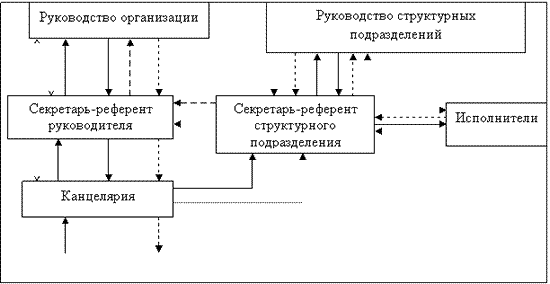 4. Схемы движения всех документов в организации разрабатываются руководителем службы делопроизводства (общего отдела, канцелярии, секретариата и т.д.) для различных категорий документов: поступающих в организацию, отправляемых из организации и внутренних документов (приказы по основной деятельности, по личному составу, протоколы, акты, письменные и устные обращения граждан и т.д.). Движение документов в организации, учреждении, где есть служба документационного обеспечения управления, например канцелярия, показано на схеме 3.1.
