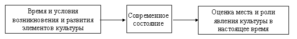 С педагогической точки зрения важно, что предлагаемая модель отражает процесс созидания знаний, а не их получения в готовом виде, общую логику принципа: от прошлого к настоящему, от фактов к обобщениям, от материального к духовному. Она соответствует и принципу историзма как научному, так и в учебном познании. Вместе с тем схема подчеркивает и общую логику культурологического принципа изучения - от разума к чувству, от рационального к эмоционально-образному. Важна и завершающая ступень - оценка, понимание места и значения элементов культуры в системе географического знания.