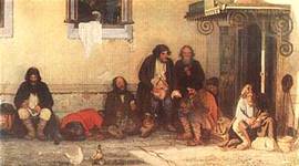 В другом фундаментальном полотне Мясоедова - "Чтение манифеста 19 февраля 1861 года" (1873) - раскрывается иной аспект той же темы - судьба крестьянства, обманутого в своих ожиданиях. "Признаюсь, - писал один из критиков, - мне не удавалось видеть (после "Бурлаков" г. Репина) ни на одной картине столь типичных, безыскусственно-правдивых, точно живых, истинно мужицких лиц". Крестьяне с сосредоточенным вниманием слушают читаемый мальчиком текст манифеста об освобождении от крепостной зависимости. Их отношение к документу еще не определилось: на лицах нет ни радости, ни явного разочарования. Но есть внутреннее напряжение, недоверие, настороженность. Крестьяне по-своему мудры и мужественны.