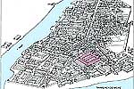 ОСТИЯ энергично застраивалась во II в. Строительство новой искусственной гавани (не показана) на Тирренском море привело к возрастанию роли Остии как главного порта Римской империи. Товары, которые импортировались из стран Средиземноморья, переправлялись из Остии в Рим (удаленном от нее на 25 км) по реке Тибр. Когда население Остии достигло примерно 50 тыс. человек, было построено много жилых зданий, включая дома-сады (выделено цветом). Рисунок выполнен по макету, созданному по сохранившимся остаткам города.