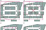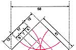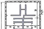 ПЛАНИРОВКА ЖИЛИЩ в дворовых зданиях определяется "священными сечениями" квадрата, длина стороны которого равна 41 римскому футу, а диагональ равна внутренней (между внутренними поверхностями наружных стен) ширине зданий (58 футов). На плане показаны два прилегающих друг к другу жилища, разделенных общей стеной толщиной 2 фута. Размеры жилищ определяются последовательными "священными сечениями". Наиболее часто встречается число 7 и его кратные.