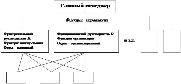 Идея функциональных структур состоит в том, что выполнение отдельных функций по конкретным вопросам возлагается на специалистов, т.е. каждый орган управления (либо исполнитель) специализирован на выполнении отдельных видов деятельности.