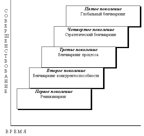 Термин "бенчмаркинг" является англоязычным и не имеет однозначного перевода на русский язык. Этот термин произошел от слова "benchmark", которое означает отметку на фиксированном объекте, например, отметку на столбе, указывающую высоту над уровнем моря. В наиболее общем смысле benchmark - это нечто, обладающее определенным количеством, качеством и способностью быть использованным как стандарт или эталон при сравнении с другими предметами. Бенчмаркинг представляет собой систематическую деятельность, направленную на поиск, оценку и учебу на лучших примерах, не зависимо от их размера, сферы бизнеса и географического положения [65] .