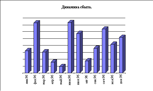 Ниже на диаграмме представлены для примера объемы помесячного сбыта одного из действующих предприятий в течение базового периода (за 96 год) в стоимостном выражении.