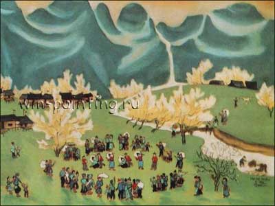 Чу Тхи Тханх, «Народный фестиваль в северо-западном Вьетнаме», Ханойский музей, шёлк, акварель, 70х65 см.