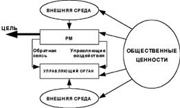 Специалист на рабочем месте является определяющим звеном, от которого в решающей степени зависит эффективность РМ, несмотря на то в какой роли он выступает: как субъект, от которого непосредственно зависит организация РМ, либо как объект в виде главного агента трудового процесса в совокупности с другими агентами, составляющими рабочее место. Такой подход рассматривает Р.А.Галиахметов в монографии "Современная информационно-энергетическая теория трудовой деятельности" [1]. Главная задача рабочего места - реализация цели, формализованной в функции РМ. Это является и причиной его создания, и причиной его развития. В процессе функционирования рабочее место постоянно подвергается воздействиям: внешней среды (правительство, административные органы региона, финансовые институты, потребители, конкуренты, субъекты экономики, профсоюзы, общественные движения и партии), управляющих органов (вышестоящий орган, руководитель), общественных ценностей (производительность и качество, опыт и культура, убеждения и привычки, компетентность и профессионализм, трудолюбие, страсть к познанию, традиции, мышление, миропонимание, понимание, образ смысла и цели жизни, устремленность и уверенность, вероисповедование и этика). Схематично это представлено на рис.1. При этом общественные ценности цивилизации оказывают воздействие на внешнюю среду, непосредственно на РМ, на управляющий орган, внешняя среда - на РМ и управляющий орган, а рабочее место, в виде обратной связи, - на управляющий орган.