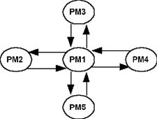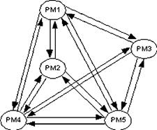 Открытая система (рис.4) представляет собой совокупность (группу) РМ, имеющих возможность прямой взаимосвязи между собой по принципу "каждый с любым", включая руководителя.