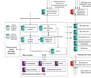 Вторым важным решением явился отказ от проектирования базы данных МИС по функциональному назначению, когда для отдельной задачи (например, подсистема лабора-тории, функциональной диагностики, консультационная и т. д.) создавалась своя база дан-ных. Хотя такой подход имеет ряд преимуществ, главным из которого является снижение требований к аппаратной мощности сервера за счет разделения потоков пользовательских запросов к отдельным БД. Однако было избрано проектирование БД МИС таким способом, что вся информация собиралась вокруг пациента и хранилась физически в одной БД.