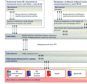 Однако, не вызывает сомнений, что эти решения значительно уступают промышлен-ным решениям для корпоративного рынка, над которыми трудятся лучшие специалисты и которые прошли многолетнюю проверку. В связи с этим вызывают недоумение подобные попытки "изобрести велосипед". На наш взгляд, разработка МИС не должна осуществляться созданием и дальнейшей интеграцией отдельных АРМов. Для создания МИС необходимо применять готовые программные платформы для групповой работы, уже имеющие в своем арсенале мощные средства для мультиплатформенной разработки программы, готовые тех-нологии для развертывания и управления подсистемой безопасности. В своей работе мы вы-брали пакет групповой работы Lotus Notes/Domino, разрабатываемый в настоящее время корпорацией IBM. Эта платформа является за рубежом стандартом "де факто" для создания мощных информационных систем, ориентированных на обработку электронных документов и мы считаем, что она наиболее подходит для создания медицинских информационных сис-тем.