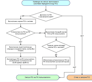 Проверяется, имеется ли вызываемое ПО на компьютере пользователя: если нет, произ-водится инсталляция программного обеспечения - из базы данных извлекаются необхо-димые файлы и настройки, создается программная папка и выполняется копирование файлов и т. д. После окончания процесса установки исполняемый файл запускается.