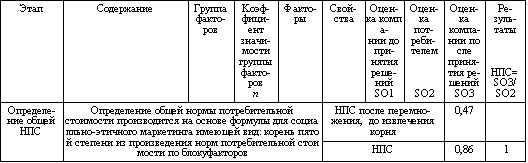 Менеджеры компании применили новую технологию оценки конкурентоспособности, которая подразумевала оценку не продукта или услуги, а совокупности маркетинговых, управленческих и организационных решений, т.е. экономической технологии компании. Расчет проводился на основе алгоритма оценки конкурентоспособности экономических технологий, использующего показатель конкурентоспособности на основе нормы потребительной стоимости.