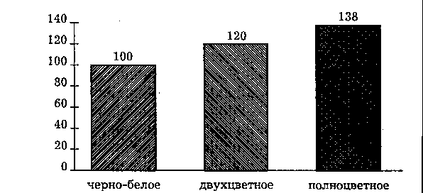 Эффективность воздействия рекламного обращения зависит и от формы представления информации. Вот, например, как влияют на восприятие цветность и размер рекламных объявлений в прессе (рис. 10, 11):