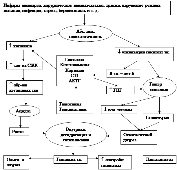 В общем виде схему патогенеза кетоацидотической комы можно изобразить следующим образом: