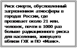 Уровни риска, связанные с загрязнением химически вредными веществами, в десятки, сотни и тысячи раз превосходят уровни, которые считаются социально приемлемыми в развитых странах.