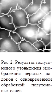 - алгоритм полутонового утоньшения объектов на слабоконтрастных изображениях гистологических объектов;