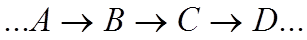 Для них характерна пространственно-временная смежность, которая только что отмечалась, и транзитивность (если в алгебре a=b, ab=c, то а=с; здесь же В, будучи причиной С, а С — причиной D, оказывается тоже причиной D, хотя и не непосредственной, но опосредованной {причиной D). Однолинейные цепи причинения сопровождаются реактивными цепями причинения.Свойство следствия влиять да свою причину оказывается предпосылкой формирования новых цепей причинения.