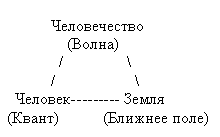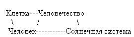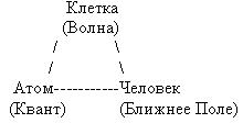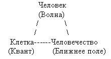 клетка (элемент, квант) – человек (система, волна)– человечество( поле, окружающая среда).
