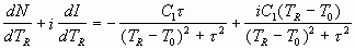 Это последнее дифференциальное уравнение в среднем очень хорошо описывает практически всю кривую зависимости . Если на оси задана действительная часть некоей не имеющей особенности функции , то сама функция легко может быть однозначно определена во всей области. Однако, в нашем случае искомая комплексная функция может иметь особенности в комплексной области и ее отыскание может быть осуществлено путем поиска особых точек. Простейшая форма комплексного дифференциальное уравнения для её определения имеет вид: