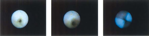 Рис. 2. На ряде снимков, выполненных при эндоскопическом исследовании семявыносящего протока, показаны полая игла и характерная спиралевидная структура протока. Также видны белые пятна семенной жидкости.