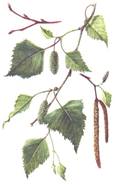 Описание растения. Береза повислая —листопадное дерево семейства березовых, высотой до 30 м с гладкой, белой, легко расслаивающейся корой. У старых деревьев кора оснований стволов с глубокими трещинами, черно-серая. Ствол прямой, ветви обычно повислые; молодые побеги красно-бурые, голые, покрыты смолистыми железками — “бородавочками”. Листья очередные, треугольно-яйцевидные до ромбических, по краям двоякоострозубчатые, тонкокожистые, гладкие, темно-зеленые, молодые — клейкие, длиной 3—7см, шириной 2,5—5 см. Почти яйцевидно-конусовидные, длиной 3—5 мм и толщиной 2—5 мм, слегка заостренные, прямые, блестящие с восковым, обычно клейким налетом. Мужские сережки длиной 5—6 см, повисающие, по 2—3 на концах ветвей; женские сережки цилиндрические, длиной 2—3 см, одиночные, на коротких боковых веточках. Плод — продолговато-эллиптический орешек с двумя перепончатыми крыльями, в 2 — 3 раза превышающими ширину орешка. В сережке содержится около 500 орешков.