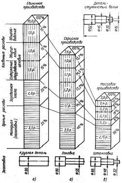 Организационно-технические особенности отдельных типов производства существенным образом сказываются на экономике предприятий. Например, съем чугунных отливок с 1 м2 производственной площади литейных цехов в серийном производстве в два-три раза, а в массовом – в четыре-пять, раз больше, чем в единичном. Чем больше объем производства изделий, чем ближе предприятие к массовому типу производства, тем меньше затраты живого труда, тем больше удельный вес расходов по содержанию оборудования.