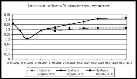 Не уменьшая общности будем для простоты считать, что все услуги имеют одинаковую стоимость. Создаваемые (новые) услуги имеют ту же самую стоимость. Обобщение на различные значения стоимостей очевидно: необходимо заменить произведение количества услуг на их стоимость на сумму произведений количества реализованных услуг на стоимость каждой услуги. Такое упрощение связано с тем, что нашей задачей является выявление определенных тенденций в управлении маркетингом предприятия. Для конкретной фирмы, естественно проводить подробные вычисления.